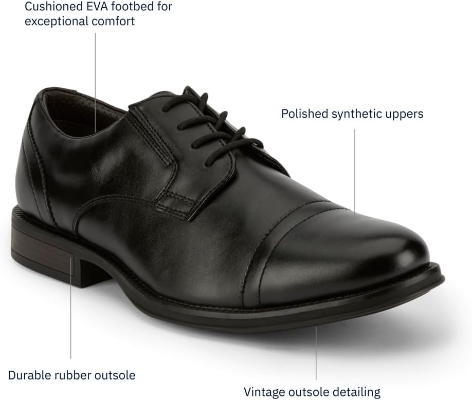 The Dockers Garfield Oxford is where timeless sophistication meets lasting comfort. Crafted with polished synthetic leather uppers, these men’s shoes offer a sleek, high-shine finish that pairs seamlessly with everything from tailored suits to smart-casual ensembles. Hand-detailed brogue accents and the structured cap to design add a layer of refinement that feels intentional and elevated, making this shoe equally at home in the boardroom or at a black-tie event. Inside, a cushioned latex footbed delivers cloud-like support, helping you move with ease through long workdays, wedding receptions, or formal gatherings. Beneath it all, a durable rubber outsole provides reliable traction and stability, while vintage-inspired texture adds subtle character for those who appreciate classic craftsmanship. With select wide-width options available, these Dockers Oxfords are thoughtfully designed to deliver both a tailored fit and enduring style, ensuring they remain a dependable choice for every dress occasion.